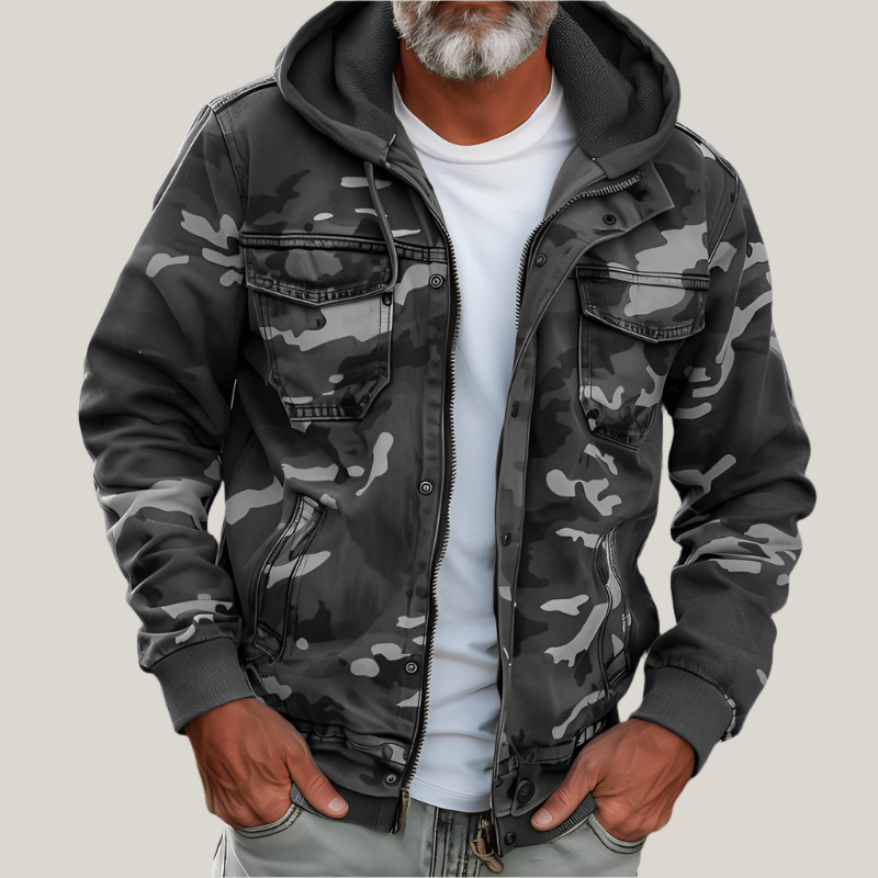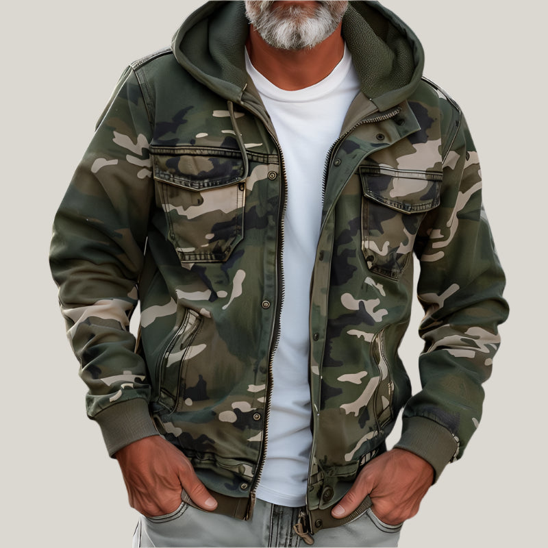 Hugo's Jacket | Men's Camouflage Cargo Jacket - With Hood and Multi-Pocket Design