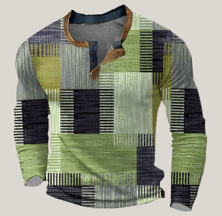 Henley Pullover | Patchwork Vintage Summer Knit Jumper Multi-Coloured for Men