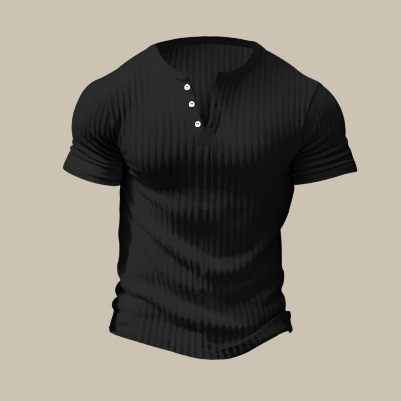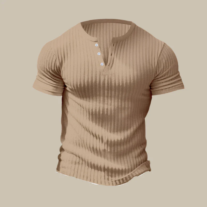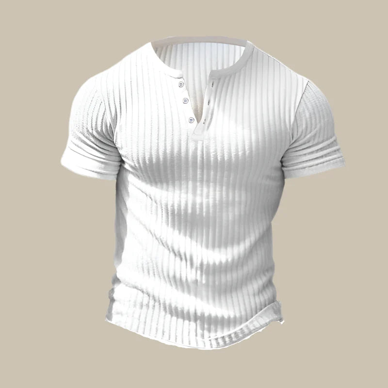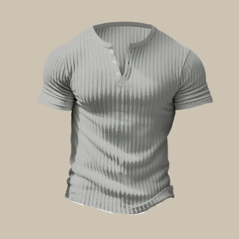 Men’s Casual Ribbed Henley T-shirt For Summer