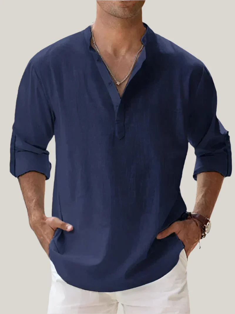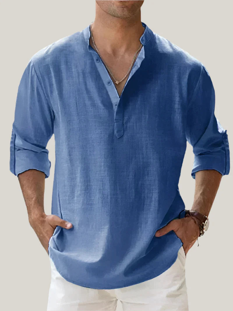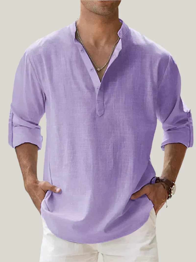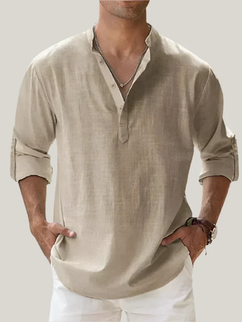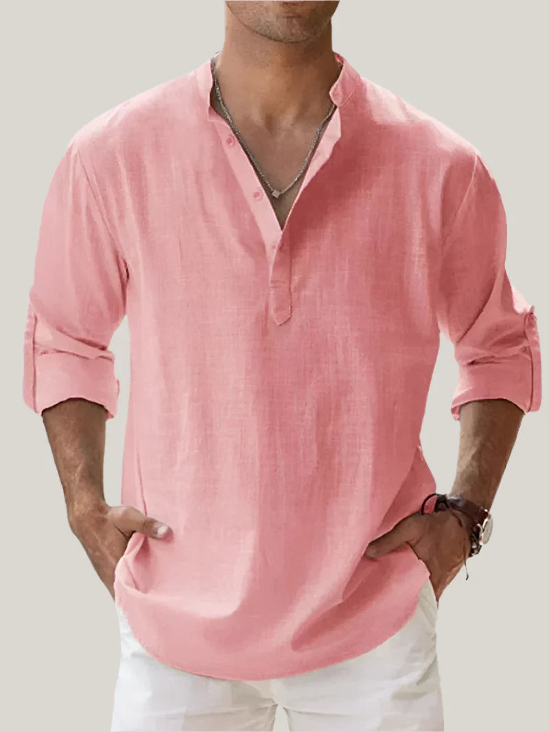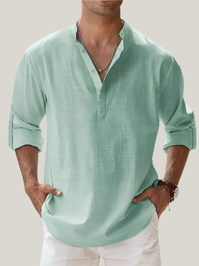 Men's Summer Shirts - Classic Long Sleeve Linen Look Shirt