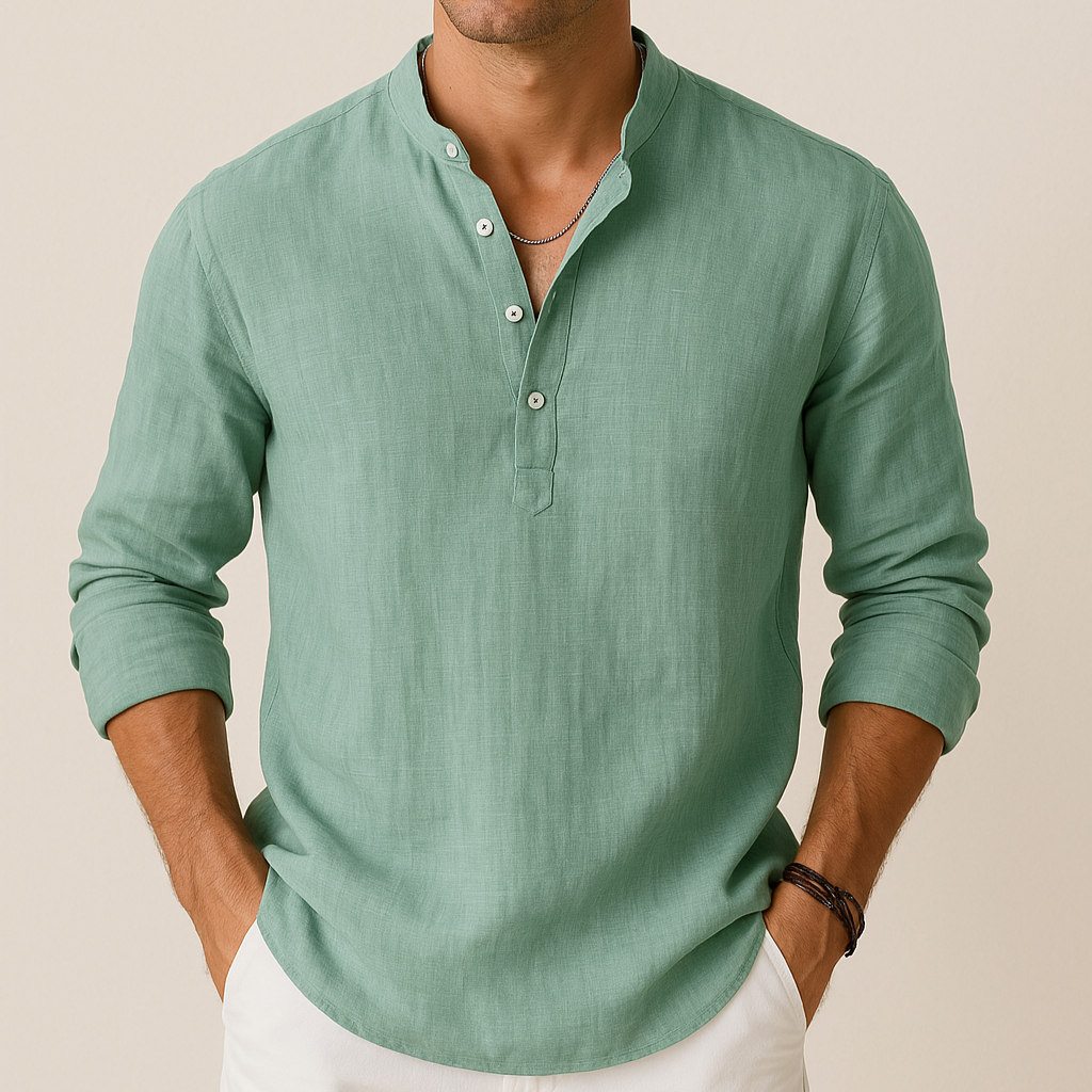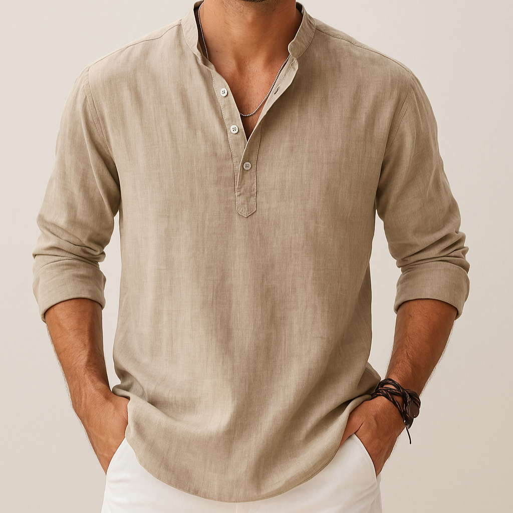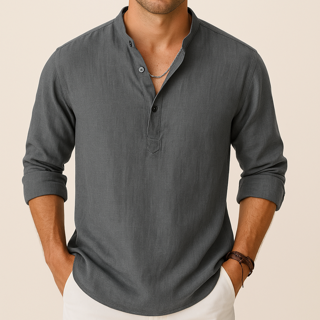 Men's Linen Look Summer Shirt – Lightweight V-Neck Shirt for Summer