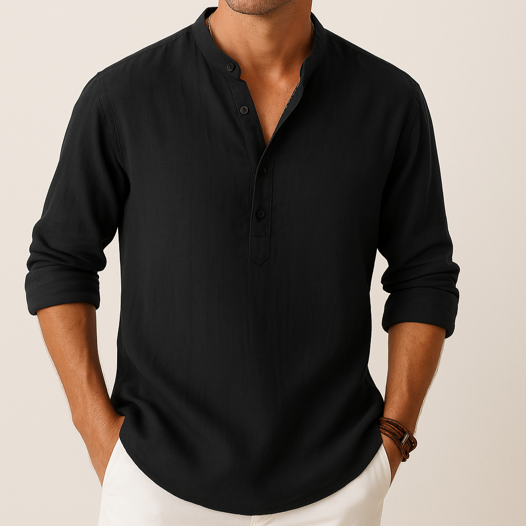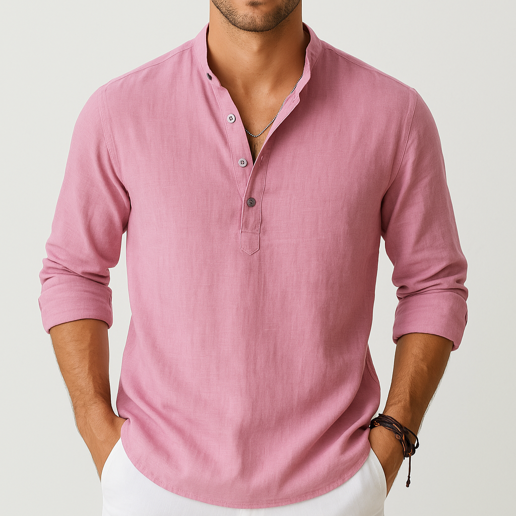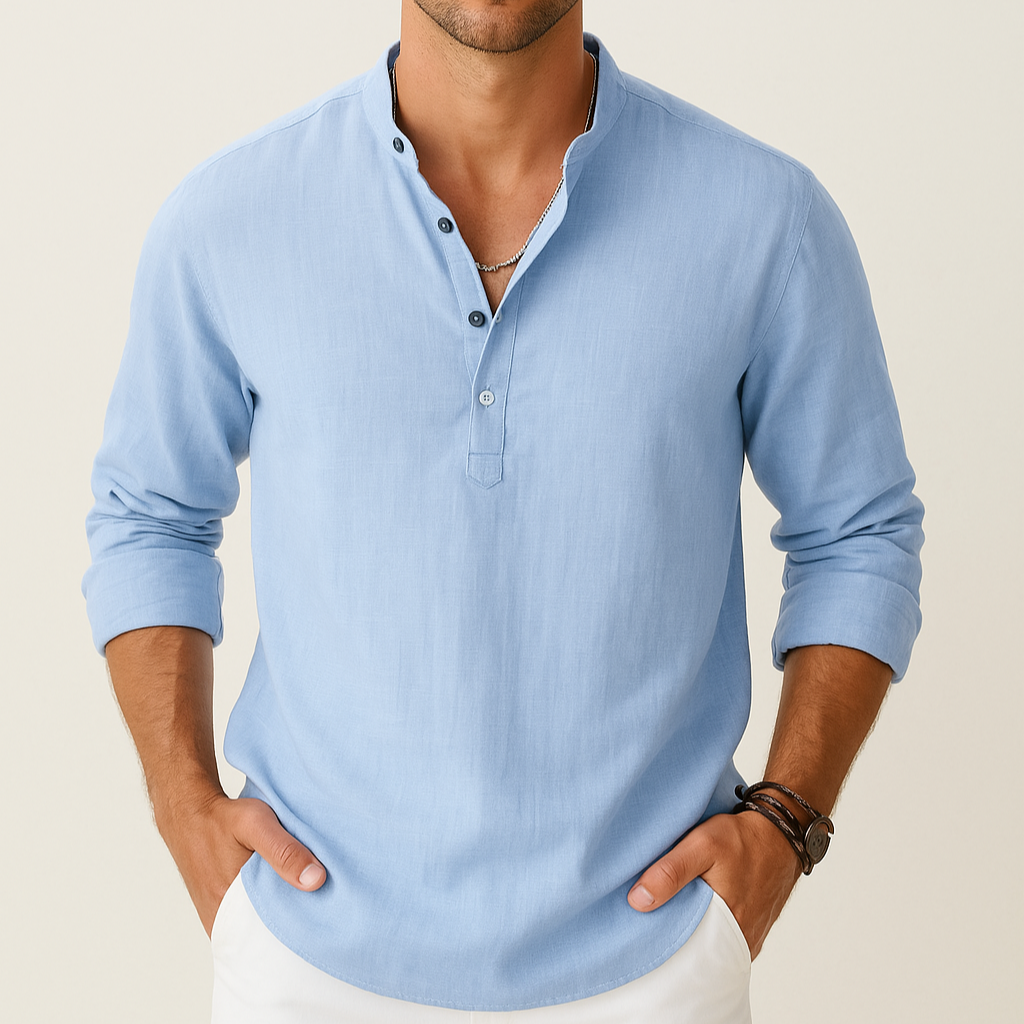 Men's Linen Look Summer Shirt – Lightweight V-Neck Shirt for Summer