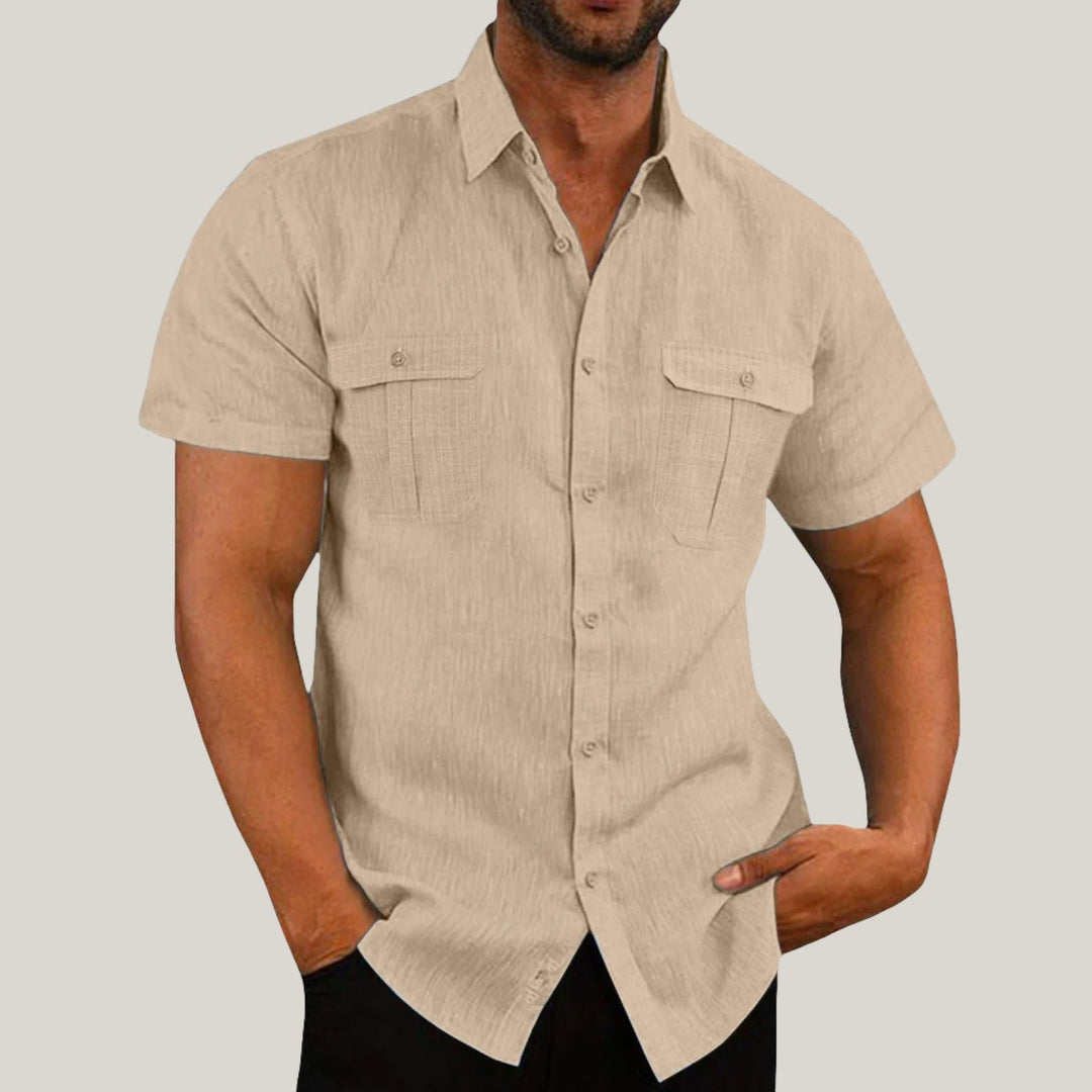 Men's Summer Shirts - Classic Short Sleeve Linen Look Shirt