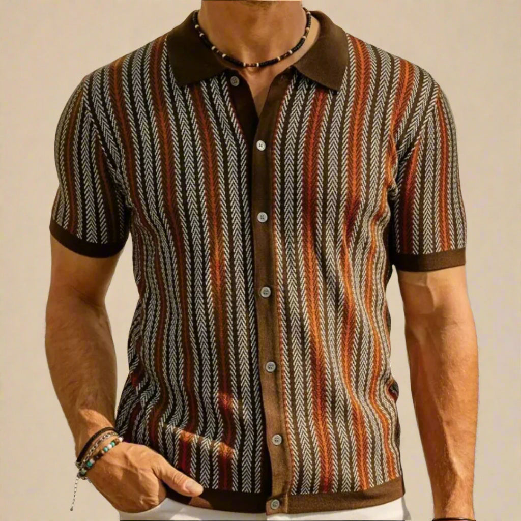 Men's Short Sleeve Shirts - Stylish Knitted Shirt with Collar