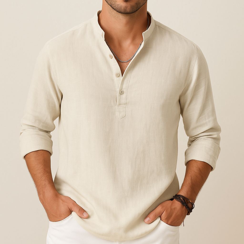 Men's Linen Shirts - Casual Shirt with Stand Collar