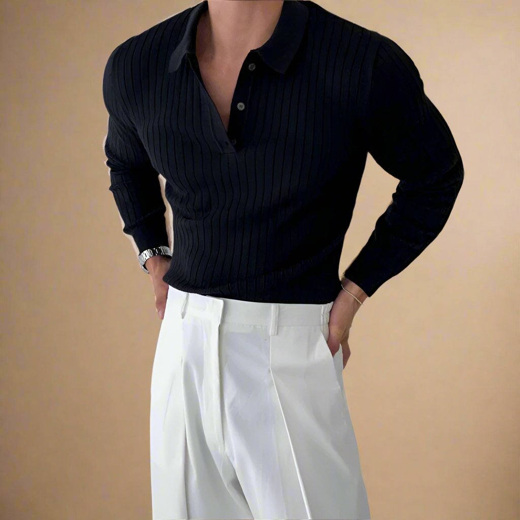 Men's Knitted Polo Shirt - Luxurious Cable Knit Polo with Buttons