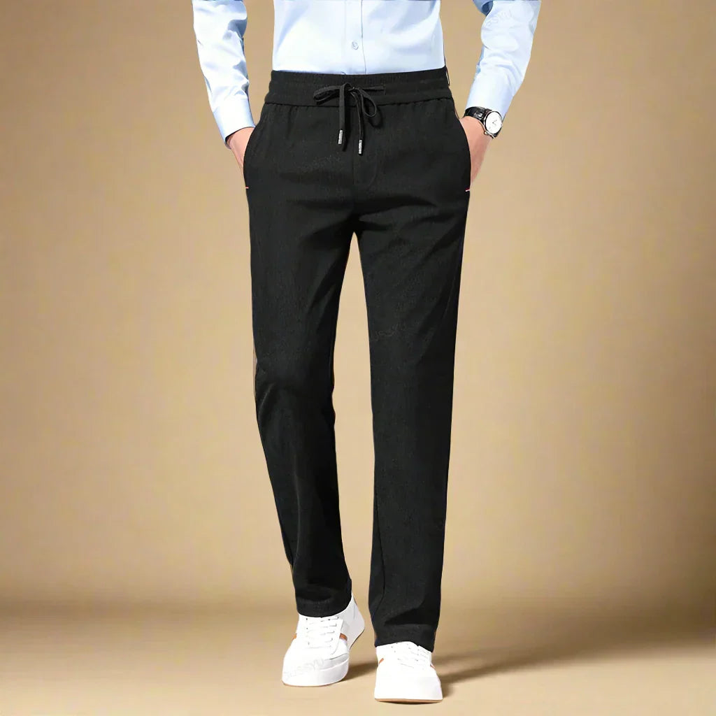 Pair them with a simple jumper for laid-back weekends or dress them up with a crisp shirt for relaxed office days. These versatile men’s trousers suit a variety of occasions while keeping you comfortable throughout the day.