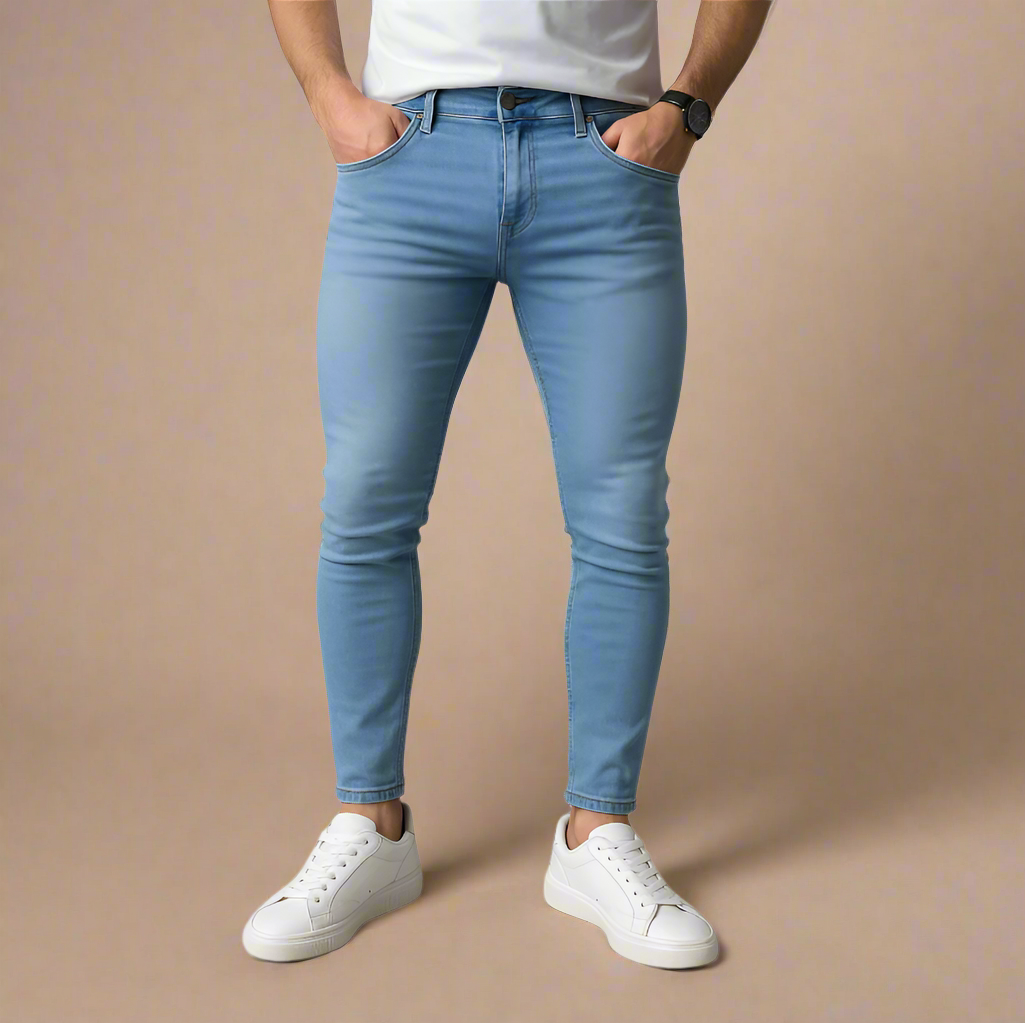Men's Trendy Blue Skinny Fit Jeans with Stretch For Summer